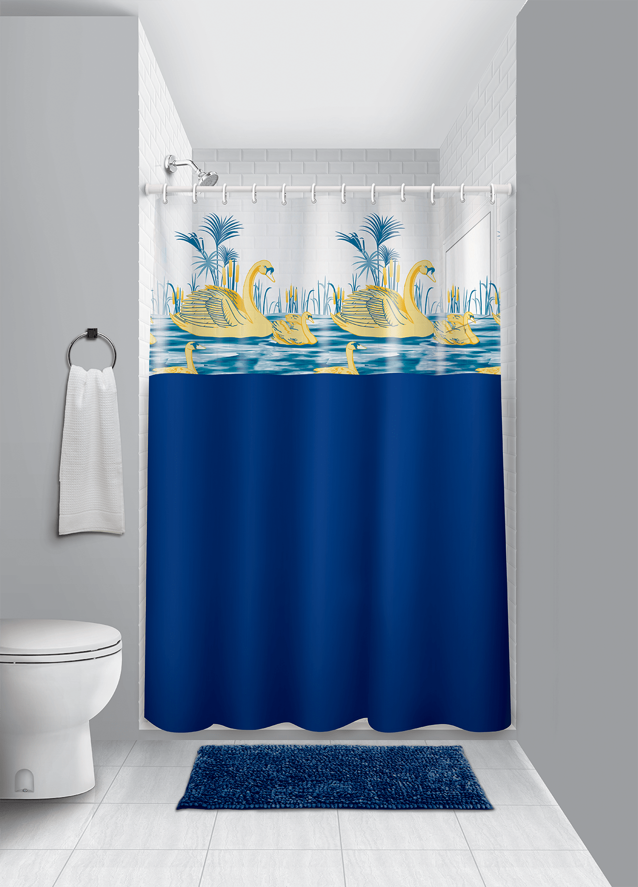 Cortina de Box vinil com visor estampado -Cisnes